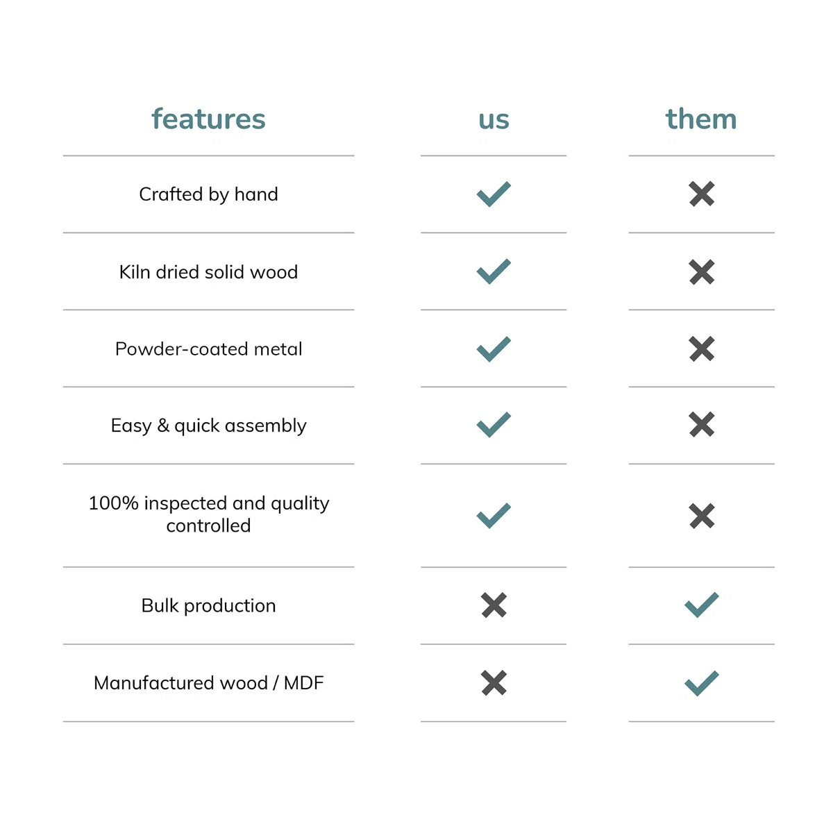 Crafted from kiln-dried mango wood and durable iron legs, the Solid Wood 3-Leg End Table is built to last. Assembly is straightforward—just attach the legs. Its robust construction supports up to 40 lb. The finish is easy to maintain: wipe clean with a damp cloth and avoid harsh chemicals to preserve texture and color.