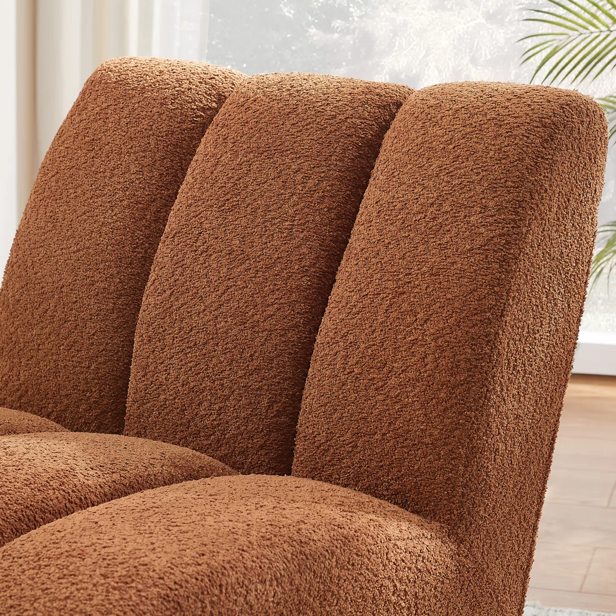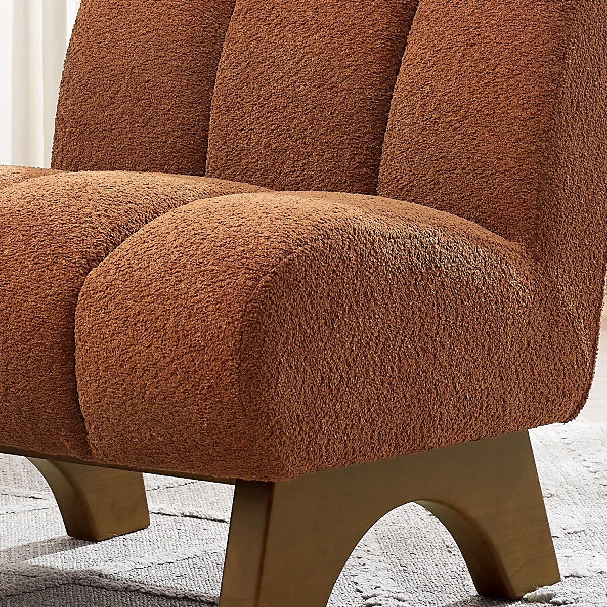 Wide Tufted Lounge Chair 25.2″ is a refined accent piece that blends comfort, texture, and compact design. Upholstered in sherpa-style lambswool, the Wide Tufted Lounge Chair 25.2″ features vertical channel tufting across the seat and back, adding visual depth and a cozy feel. Built on a solid and engineered wood frame, it includes an arc wood base that offers both durability and a distinctive silhouette.